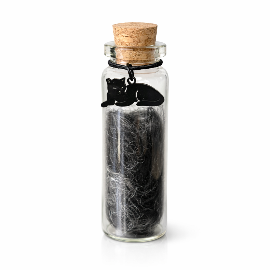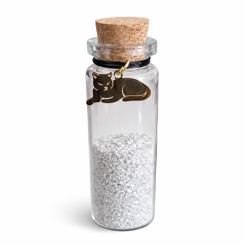 Der Verlust einer Katze ist schmerzlich, doch manchmal genügt schon eine kleine Erinnerung. Dieses Fläschchen eignet sich für eine kleine Menge Asche, aber auch für ein paar Schnurrhaare oder eine Locke des Katzenfells. Stellen Sie es an einen ruhigen Ort in Ihrem Zuhause, wo Sie einen Moment innehalten können. Abgerundet wird das Ganze durch einen hübschen Anhänger.