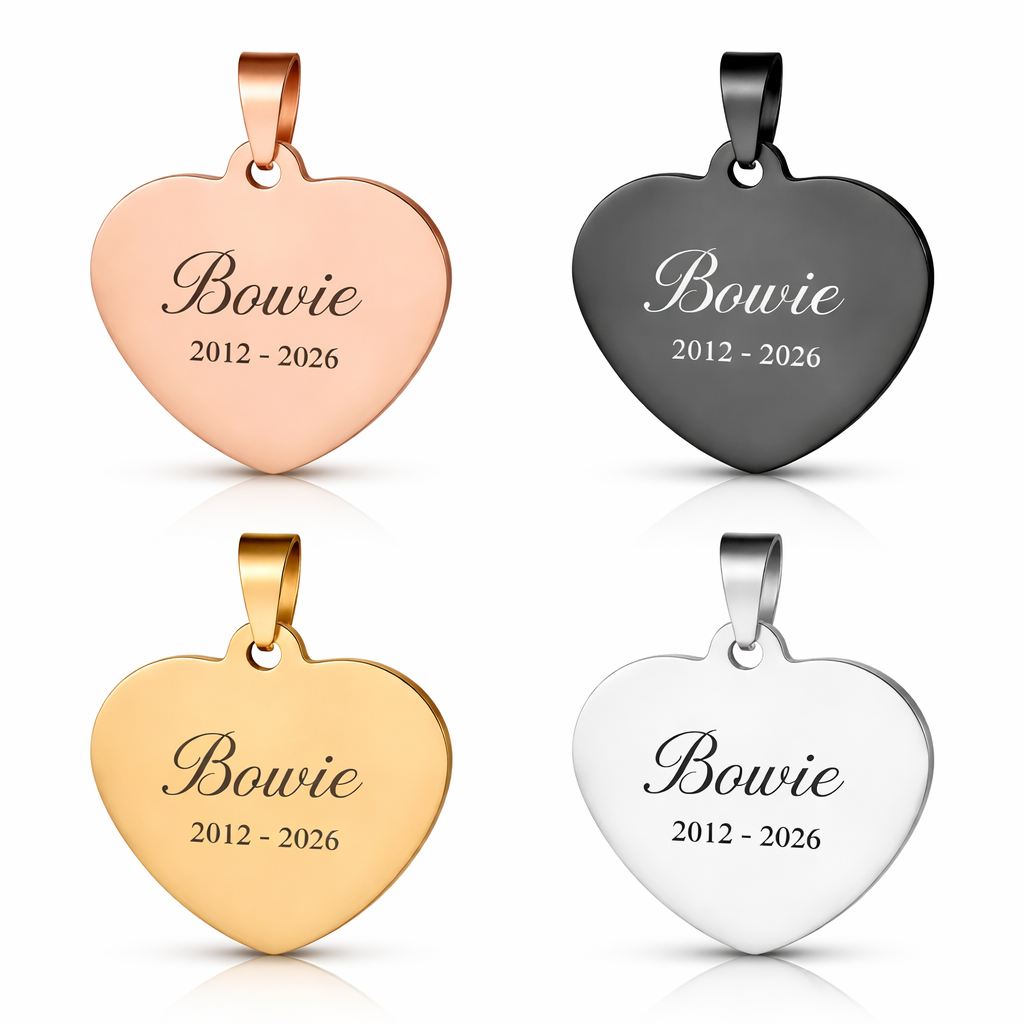 Dieser Anhänger aus Edelstahl lässt sich mit einem Namen, Datum oder einer kurzen Botschaft Ihrer Wahl personalisieren. Er wird ohne Kette geliefert, sodass Sie ihn ganz einfach mit einer vorhandenen Halskette, einem Schlüsselanhänger oder einem Band Ihrer Wahl kombinieren können. Eine bleibende Erinnerung an Ihr geliebtes Haustier.