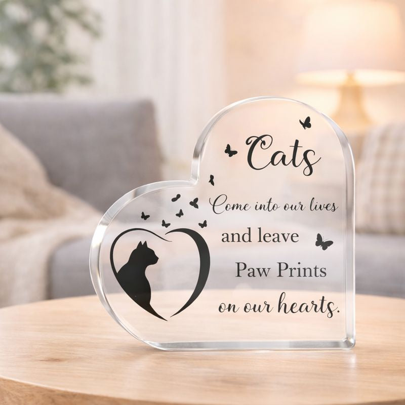 Eine wunderschöne Gedenkstatue für Ihre geliebte Katze mit der berührenden Inschrift: „Katzen treten in unser Leben und hinterlassen Pfotenabdrücke in unseren Herzen.“ Eine liebevolle Ergänzung für Ihre Gedenkstätte zu Hause, eine greifbare Erinnerung an die besondere Verbindung zu Ihrer Katze. Sie ist auch ein wundervolles Geschenk für jemanden, der sich kürzlich von seiner Katze verabschieden musste, als Zeichen des Mitgefühls und der Anteilnahme in dieser schweren Zeit.