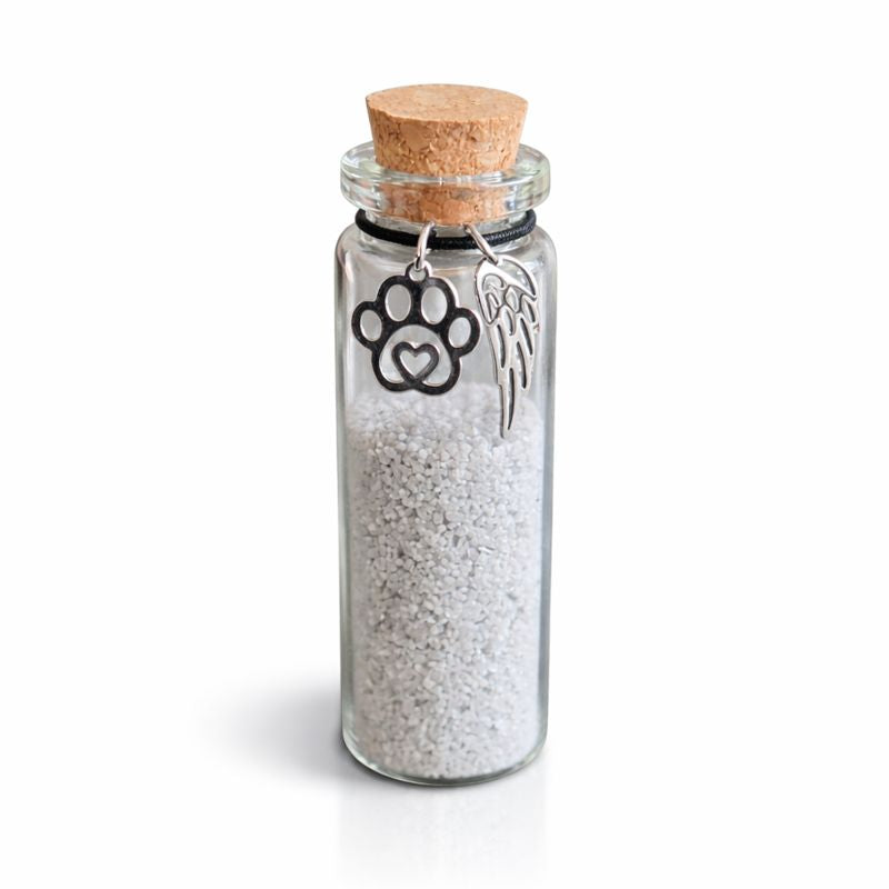 Bewahren Sie eine Felllocke, einen Teil der Asche oder ein kleines Andenken wie Schnurrhaare oder eine Haarlocke in dieser Erinnerungsflasche auf. Sie ist eine liebevolle Ergänzung für eine Urne oder eine Gedenkecke. Verziert mit hübschen Anhängern.